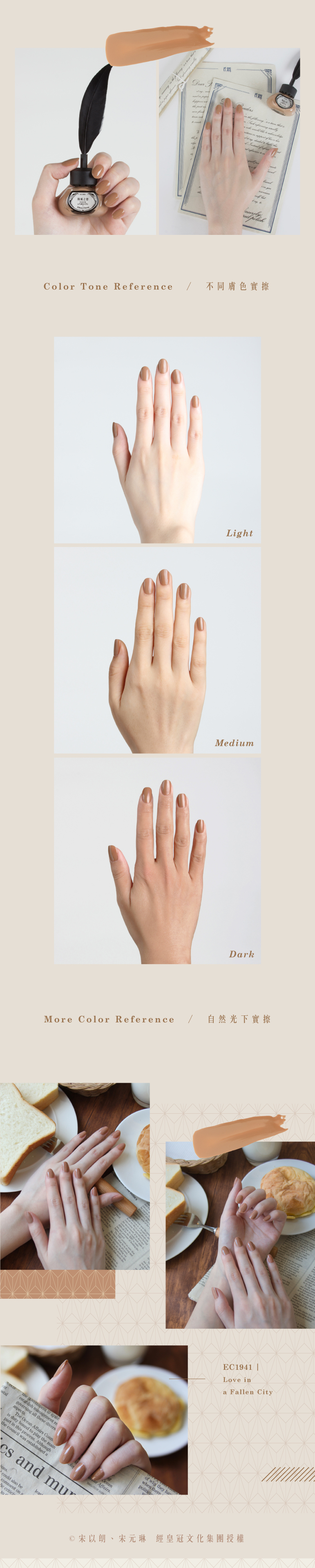 偏膚色的卡其色,修飾掉了原指甲的粉色,彷彿替甲面上了粉底,帶著多一層的自信,讓妳能更平靜地去面對這個世界的現實。
