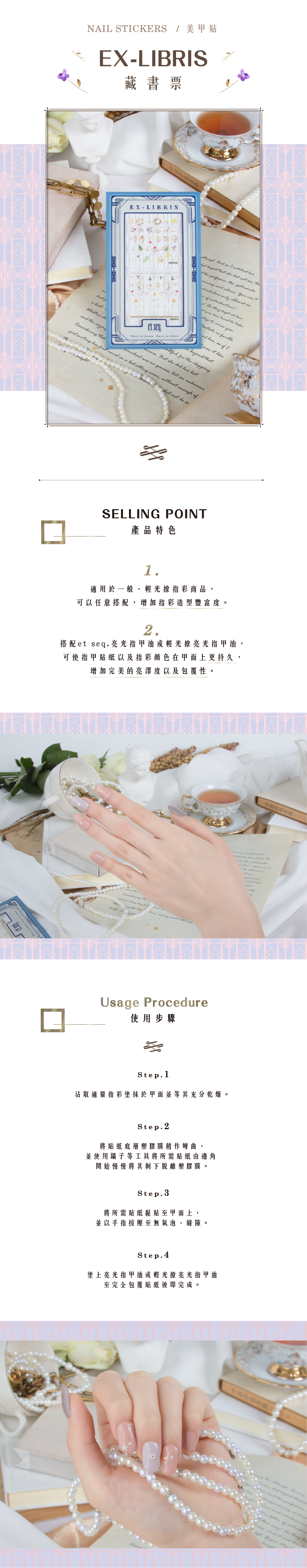 藏書票(美甲貼)乙款+藏書狂(輕光撩亮光指甲油)乙瓶+UV指彩固化機乙台