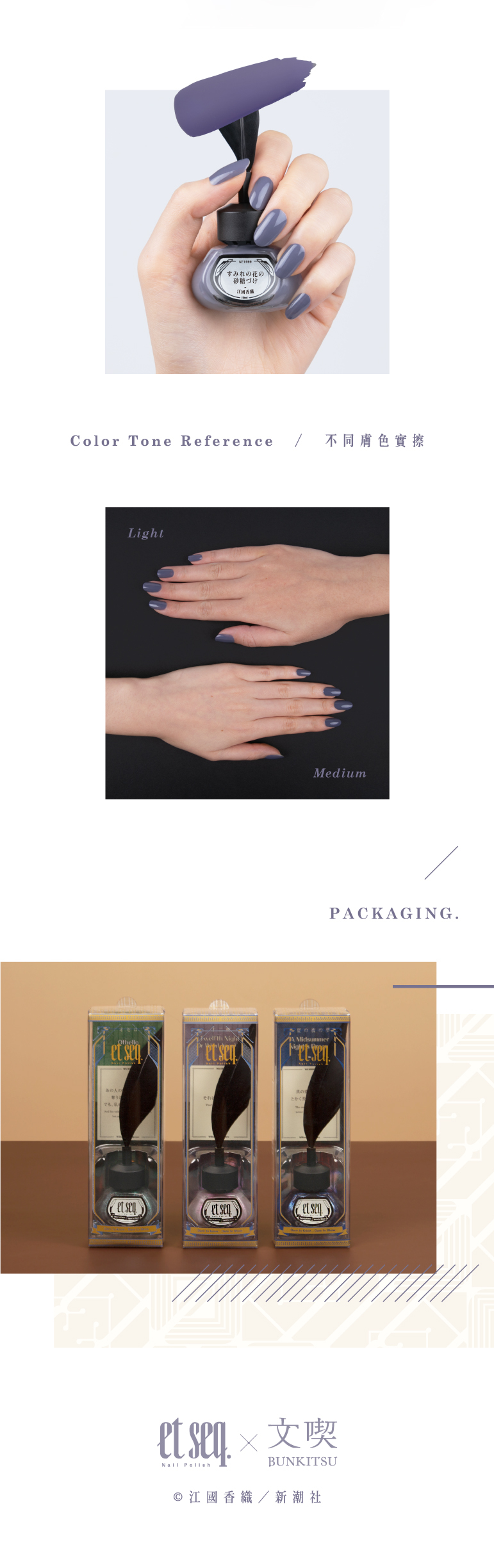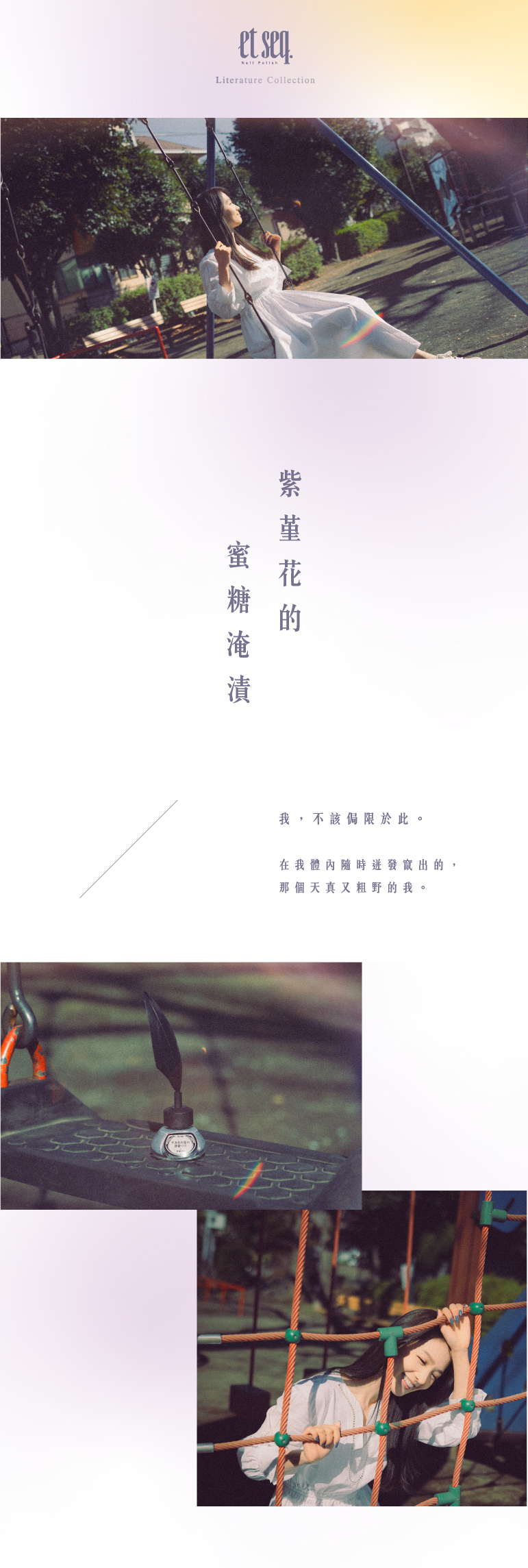 指彩使用飽和度較高但彩度相對低一點的紫菫色,顯示日常裡不平凡中的那些平凡,如同那些詩句,彷若只是家常瑣事,但卻帶出瑣事後面那已不再是少女的自己。