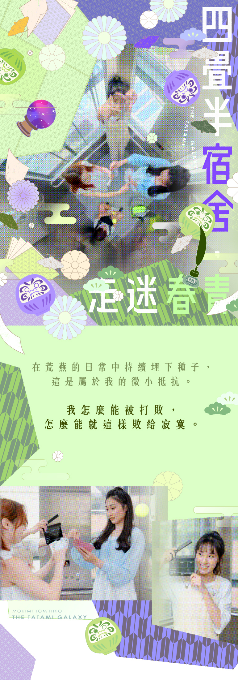 花綠青色是一種明亮但卻樸素的顏色,透過這個顏色表達那些反覆的選擇與錯誤,都反映了人生中不可逆的困境和不確定性。它同時也提醒了我們,或許正是那些錯誤和不完美的經歷,以及那份不屈與執拗,才真正構築了那份屬於自己的青春。