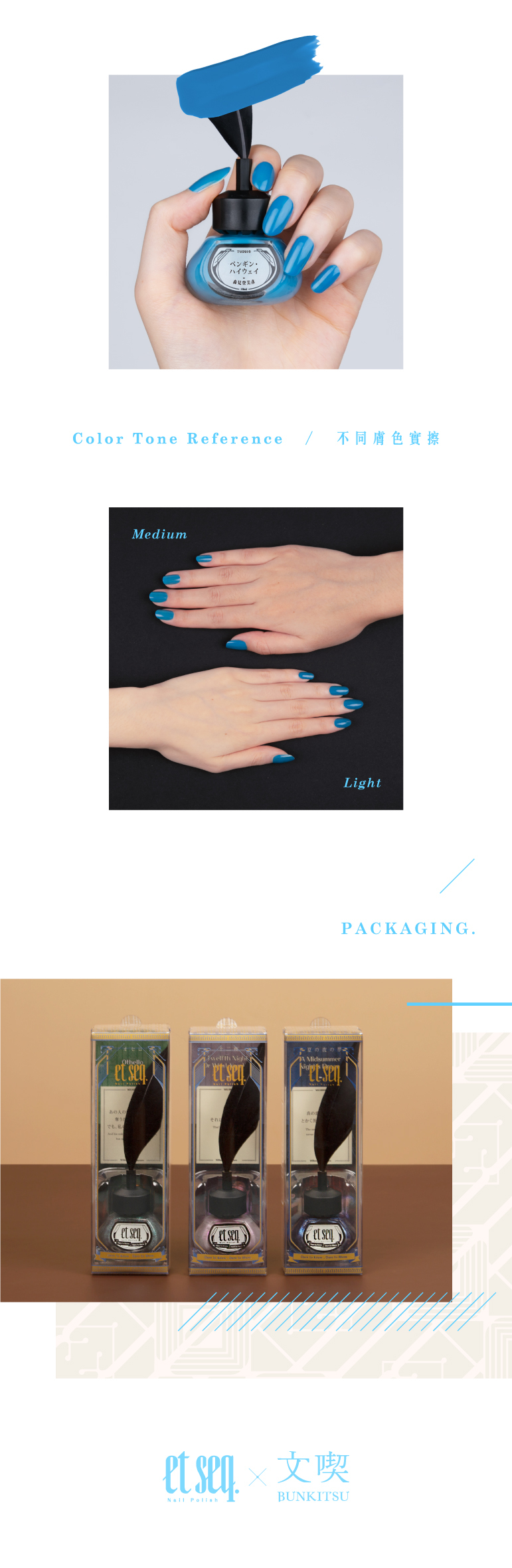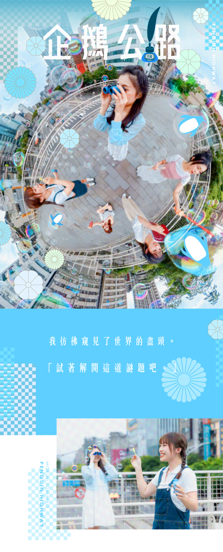 使用讓人可以聯想到大海(紺碧之海)的紺碧色—廣闊大海與天空的仲夏色—,那是企鵝們一路前往的盡頭,也是解開謎團的線索。其中好像藏著什麼的深藍,寬廣又充滿生機,連結著每個孩子們未知不可期的成長。